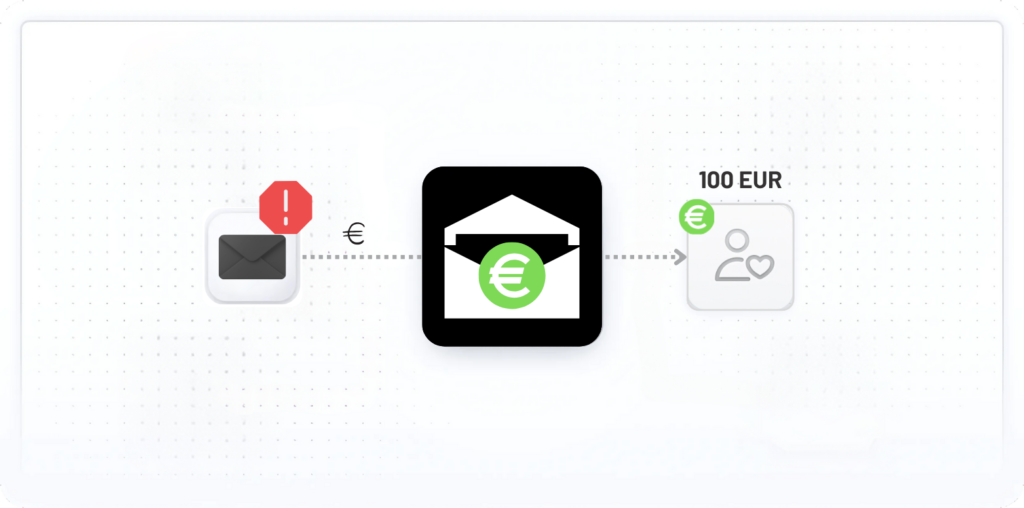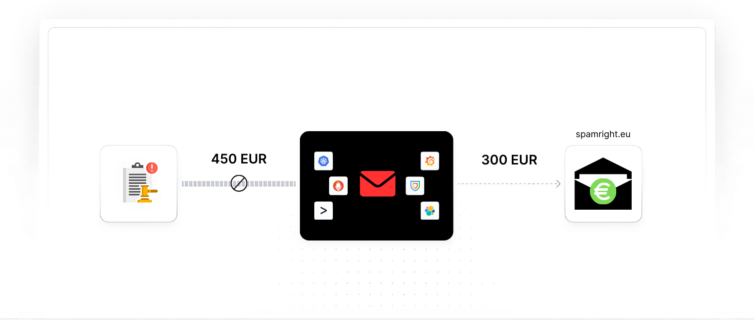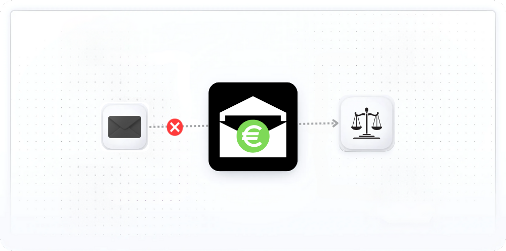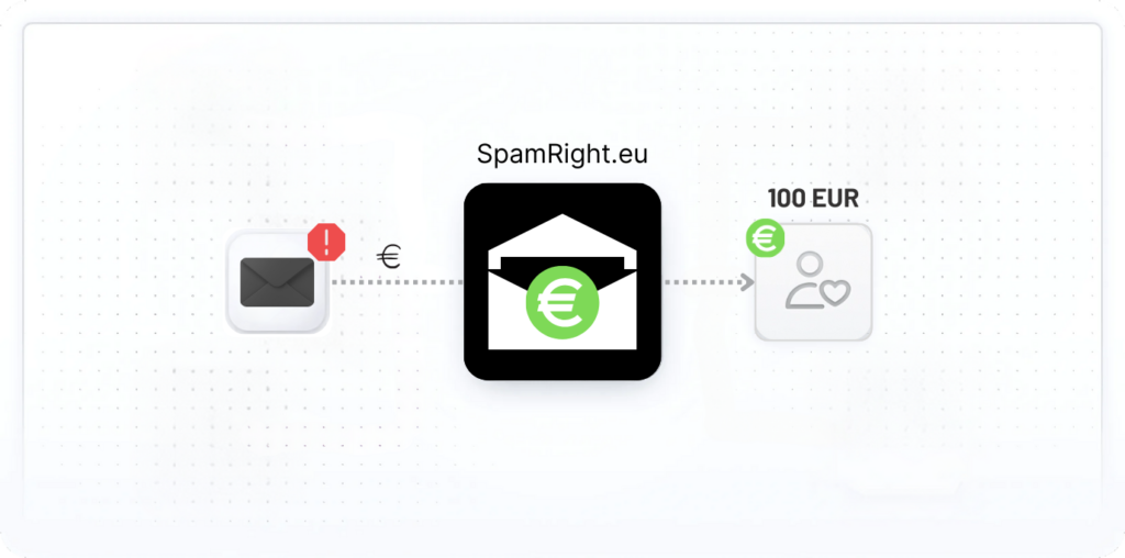 Mit SpamRight.eu melden wir deine Spam-Mails und sorgen dafür, dass die Absender entweder zahlen oder rechtliche Konsequenzen bekommen. Und wenn sie zahlen, bekommst du 100 EUR davon!